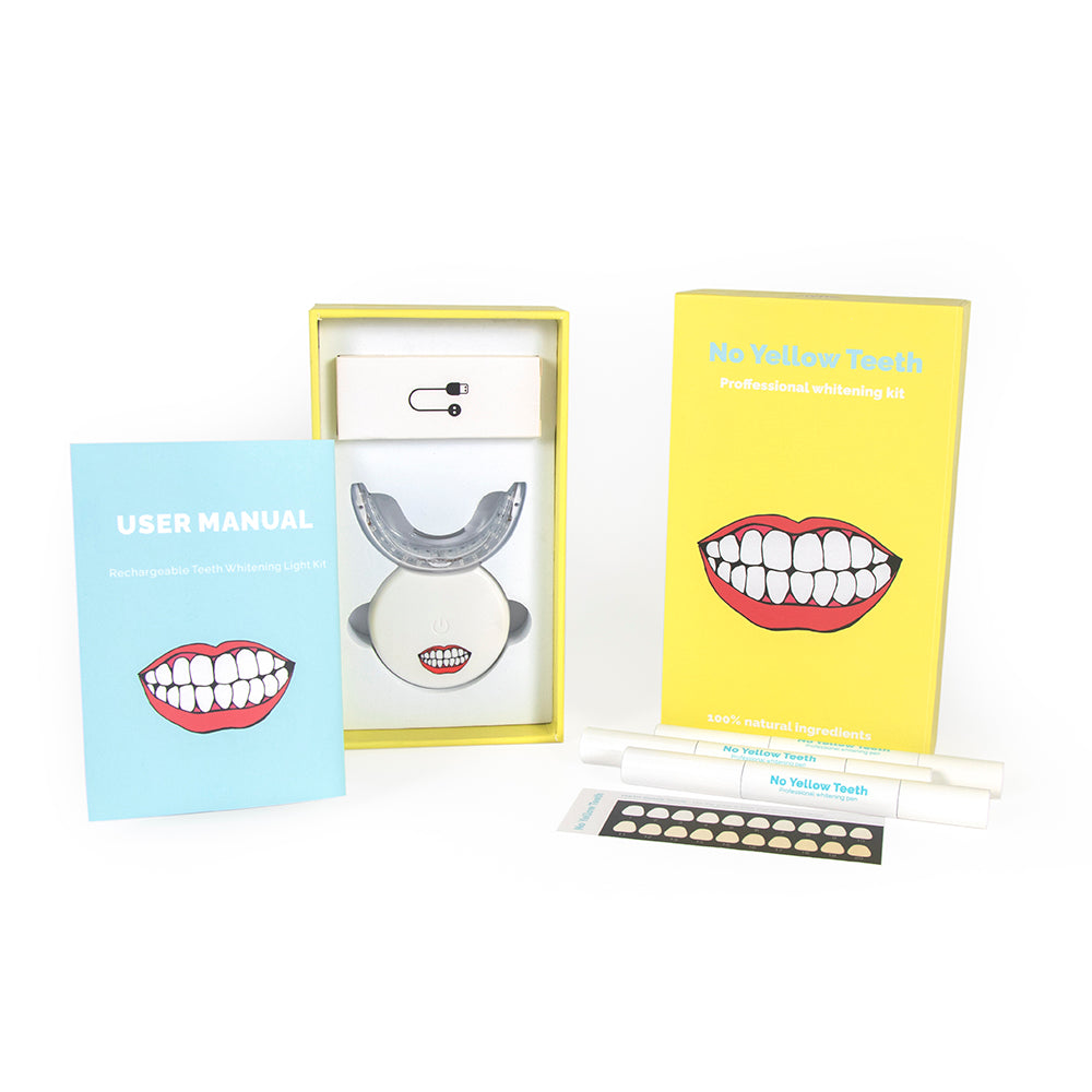 De set is erg makkelijk in gebruik. Je begint door eerst goed je tanden te poetsen, zodat het tandoppervlak schoon is. Vervolgens maak je je tanden droog met een doek en breng je de gel aan op het tandoppervlak. Nu kun je het mondstuk aanzetten en een behandeling kiezen. Nadat je een behandeling hebt gekozen, plaats je het mondstuk in je mond en wacht je 16 minuutjes totdat de lichtjes uitgaan. Zodra de lichtjes uit zijn heb je de behandeling voltooid en kun je weer lachend het leven tegemoet.